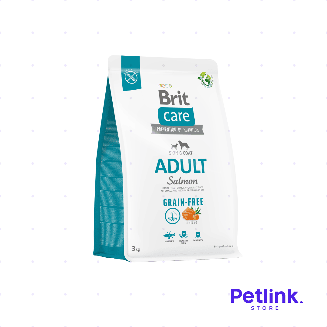 BRIT CARE ALIMENTO SECO LIBRE DE GRANOS PERRO ADULTO TODAS LAS RAZAS FORMULA SALMON BOLSA 3 KILOS