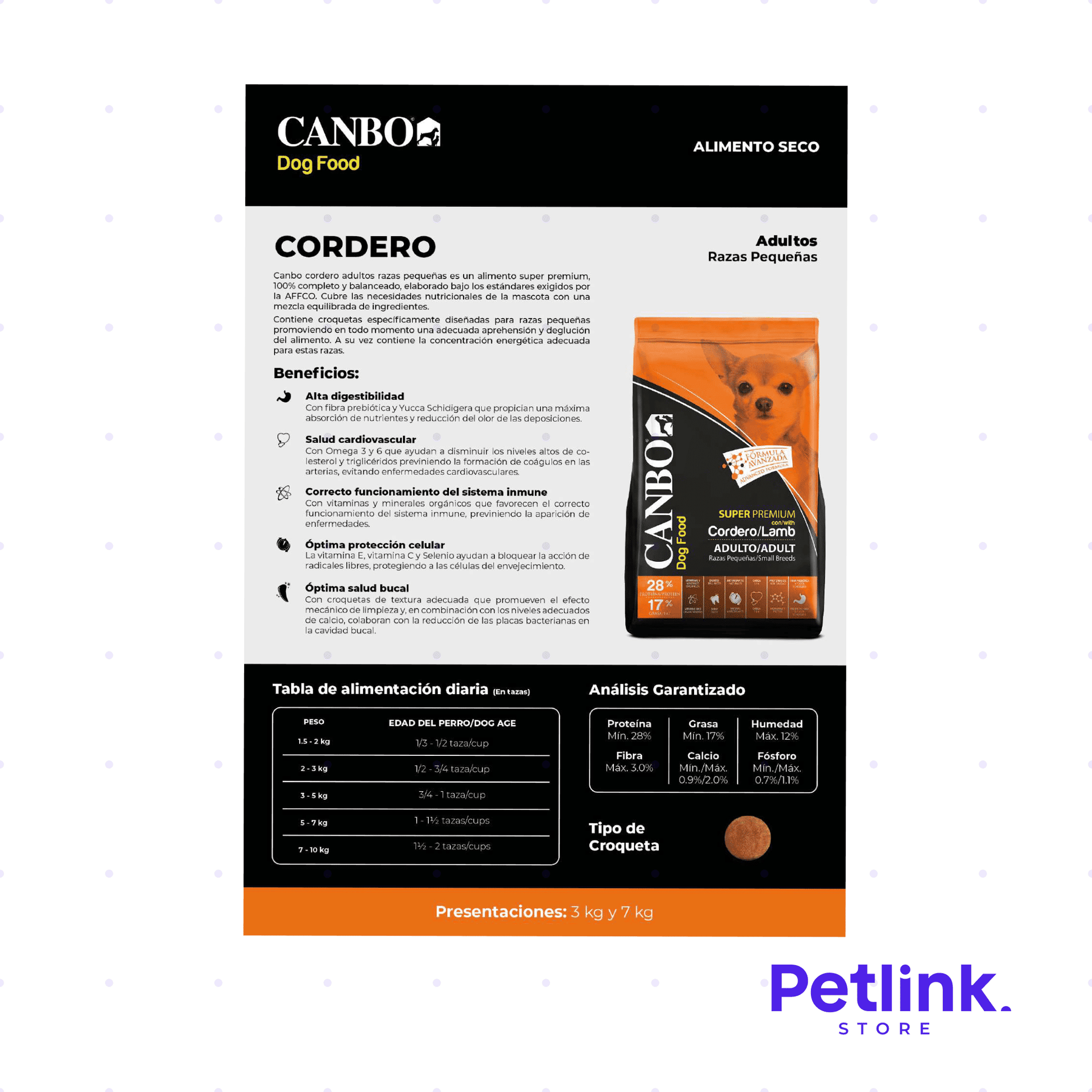 CANBO ALIMENTO SECO PERRO ADULTO RAZA PEQUEÑA RECETA CORDERO BOLSA 7 KILOS