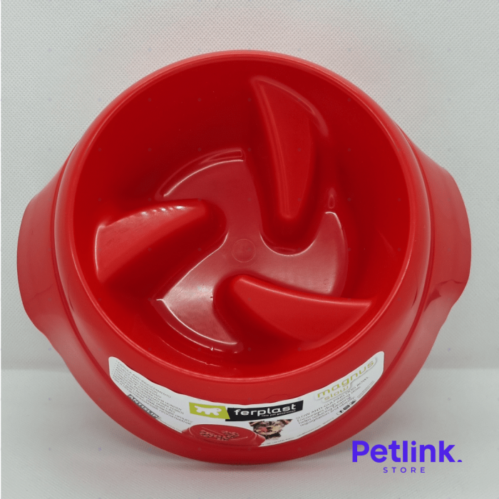 FERPLAST PLATO COMEDERO ANTIVORACIDAD ANTIDESLIZANTE PARA PERROS RAZA PEQUEÑA MODELO MAGNUS SLOW COLOR ROJO CAPACIDAD 500ML