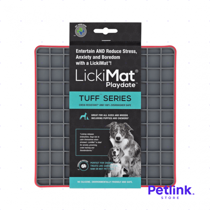 LICKIMAT PLATO ALIMENTADOR LENTO PARA PERROS MODELO PLAYDATE TUFF SERIES COLOR ROJO CON GRIS