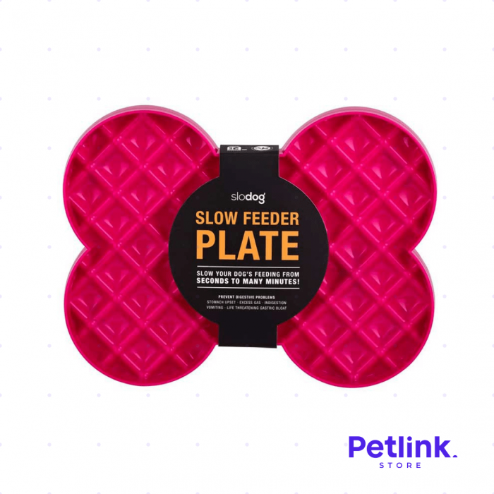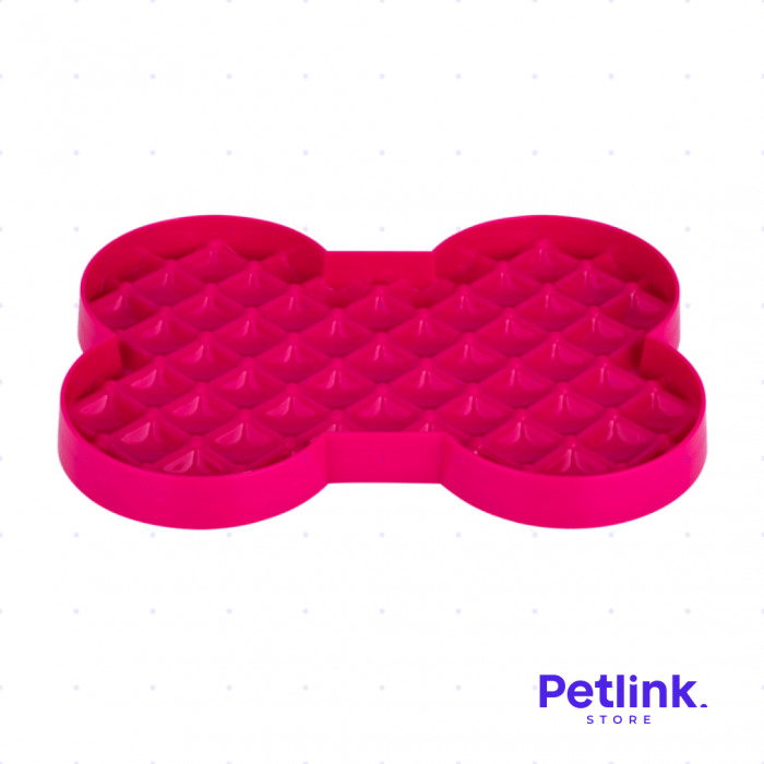 LICKIMAT PLATO ALIMENTADOR LENTO PARA PERROS MODELO SLODOG DISEÑO HUESO COLOR ROSADO
